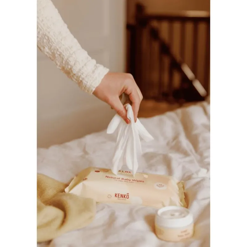 De 100% natuurlijke babydoekjes van Kenkô zijn door en met moeders ontwikkeld. Het eerste doekje met een rijke 3 in 1 lotion die niet alleen reinigt, maar ook de gevoelige babyhuid voedt en beschermd. De wetenschappelijk onderbouwde lotion laat een zichtbaar en voelbaar dun laagje achter dat de huidbarrière helpt te beschermen, waardoor het standaard gebruik van luiercrème overbodig wordt. De doekjes worden in Nederland op basis van de hoogste kwaliteitseisen onder medical cleanroom standaarden geproduceerd. Met het zachtst mogelijke doek, gemaakt van het duurzame lyocell (houtvezels), zonder plastic en biologisch afbreekbaar. Letterlijk: the wipe that cares!