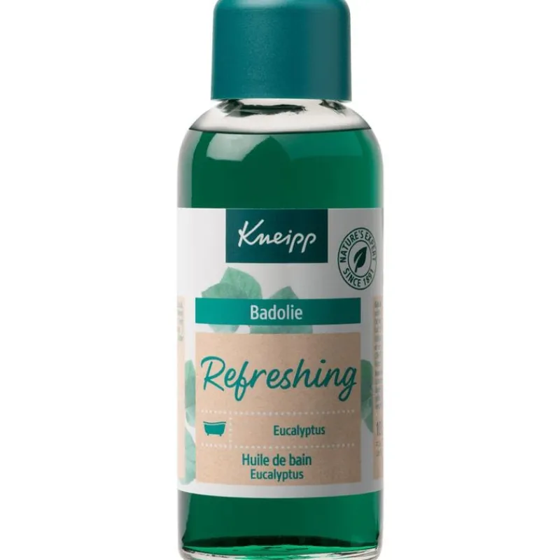 De weldadige Kneipp badolie Refreshing – Eucalyptus bevat een bijzonder hoog percentage etherische eucalyptusolie en zorgt voor een heerlijke badervaring. Het lichaam wordt tijdens het baden aangenaam verwarmd en door de verkwikkende geur van eucalyptus verbetert je welzijn.. De natuurlijke geurwerking van de etherische oliën ontwikkelt zich in combinatie met de weldadige werking van het warme water.