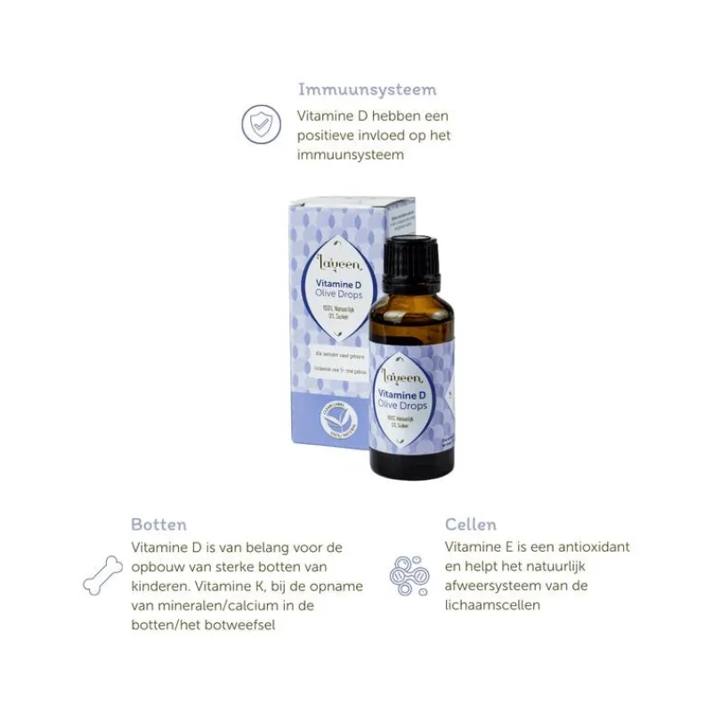 Laveen™ Olive Drops Vitamine D druppels zijn vitaminedruppels, gemaakt op basis van biologische olijfolie. Verder zit er geen suiker of andere toevoegingen in!