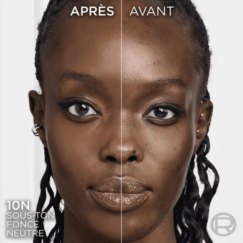 Stap 2: Kies de juiste foundationkleur. Het cijfer in de foundationnaam staat voor de kleur: deze gaat van licht (1), naar donker (12). Breng de natuurlijk dekkende foundation aan op de overgang van de kaaklijn naar de hals. De juiste kleur L’Oréal Foundation wordt één met je eigen huidskleur.
