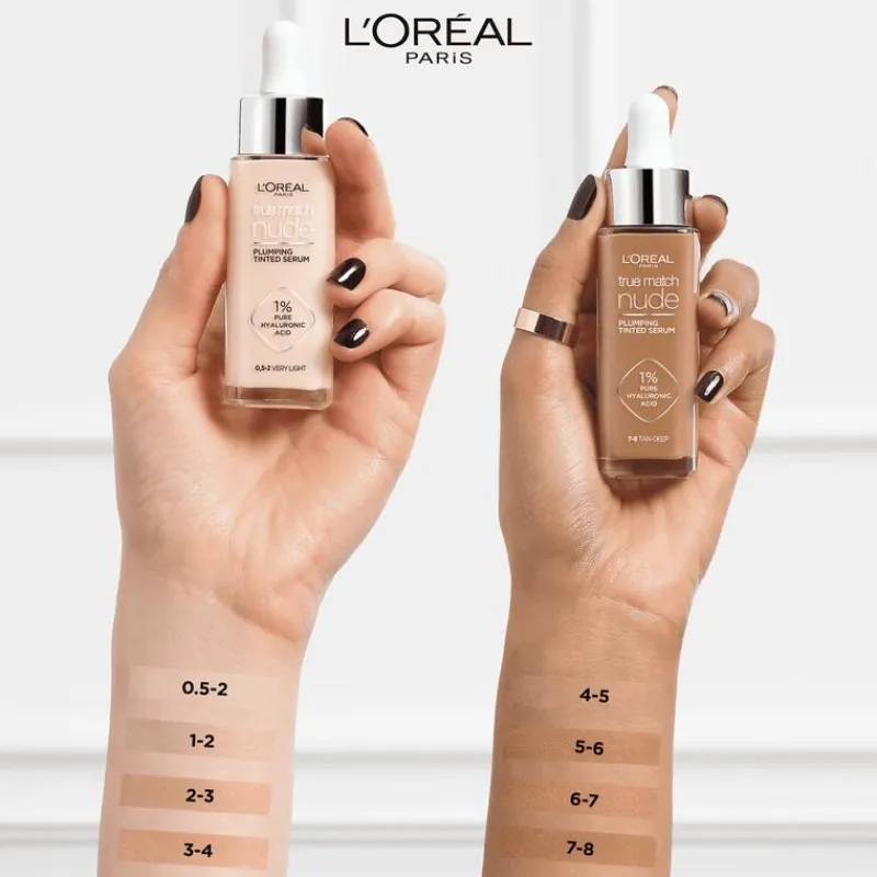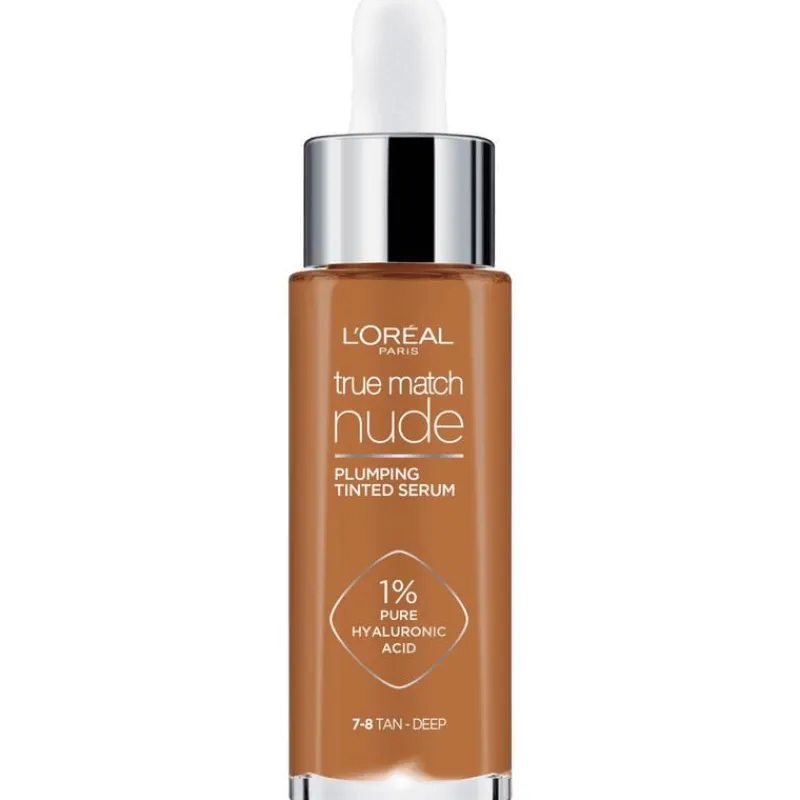 Het L’Oréal Paris True match Nude Volumegevend getint serum is nu verrijkt met micro epidermale hyaluronzuur, een ingrediënt dat extra goed wordt opgenomen door de opperhuid. Het resultaat? De formule kan nog beter helpen de huid te verbeteren en laat deze er voller uitzien in slechts 1 uur*! Met dit product kun je je de voordelen van een huidverzorgingsserum combineren met de dekking van een foundation. Direct na het aanbrengen ziet de huid er stralender en egaler uit. De formule voelt licht aan op de huid en geeft een natuurlijk resultaat. True Mach Nude helpt de huid zichtbaar te verbeteren: onmiddelijk en na verloop van tijd. Het laat de huid er in 1 uur* voller uitzien waardoor fijne lijntjes minder zichtbaar zijn. Daarnaast hydrateert het de huid 24uur** lang. De formule bevat niet alleen hyaluronzuur maar ook glycerine. Hyaluronzuur trekt vocht aan en glycerine zorgt dat het beter door de huid wordt vastgehouden. Na 4 weken gebruik ziet de huid er gladder uit en heeft deze minder droge plekjes. De formule is non-comedogeen, dit houdt in dat de formule de poriën niet verstopt en geschikt voor de gevoelige huid. *Klinische score, 84 personen. ** Instrumentele test Tip: Probeer ook L’Oréal Paris Lumi glotion. Deze kan je aanbrengen over je make-up voor een gloweffect op een gedeelte van je gezicht.