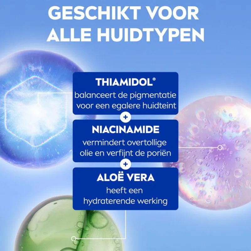 Bevat Thiamidol, Niacinamide en Aloe Vera