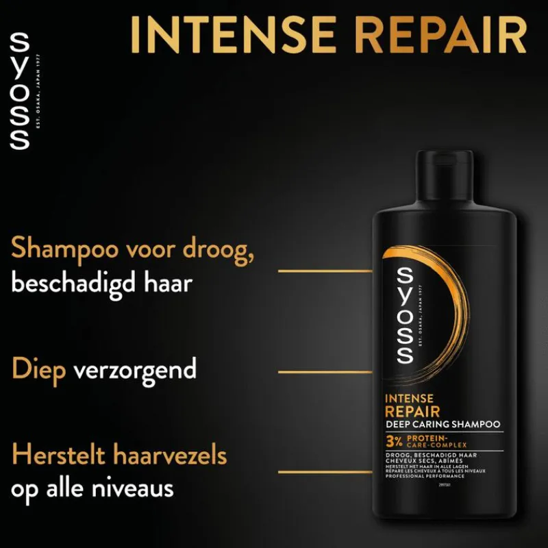 Syoss Intense Repair Shampoo voor droog en beschadigd haar.