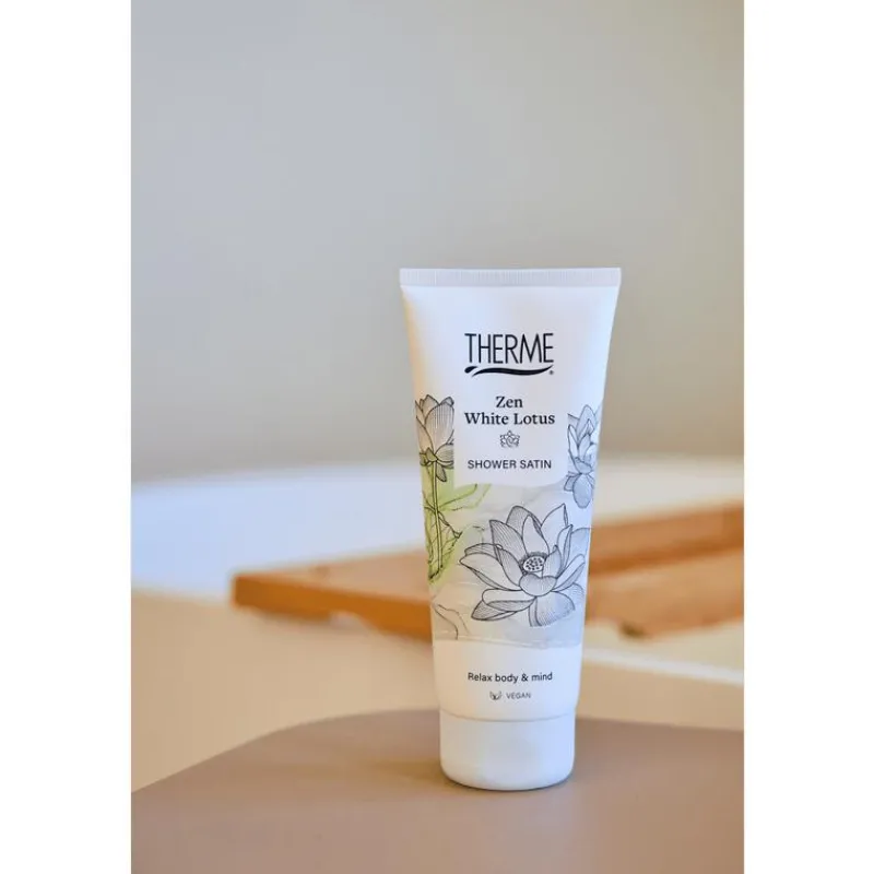 Therme Zen White Lotus is geïnspireerd op rustgevende Zen-rituelen en de symboliek van de witte lotus; transformatie en puurheid. Creëer je eigen wellnessritueel en verwen je huid na het douchen met een Therme Zen White Lotus verzorgingsproduct.