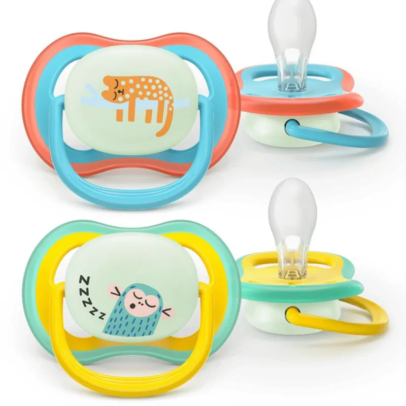 Dankzij het langdurig oplichtende schildje van de ultra air-fopspeen vind je de speen van je baby snel in het donker, zonder dat je de lampen aan hoeft te doen.