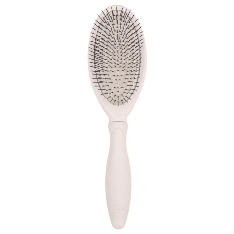 De Etos Anti-klit Borstel is de perfecte oplossing om klitten eenvoudig en pijnloos te verwijderen. Deze grote, ovale borstel is voorzien van zachte, flexibele pinnen die door je haar glijden zonder te trekken of breken. De borstel is geschikt voor alle haartypes en helpt je haar glad en klitvrij te houden, zelfs bij breekbaar haar of extensions.