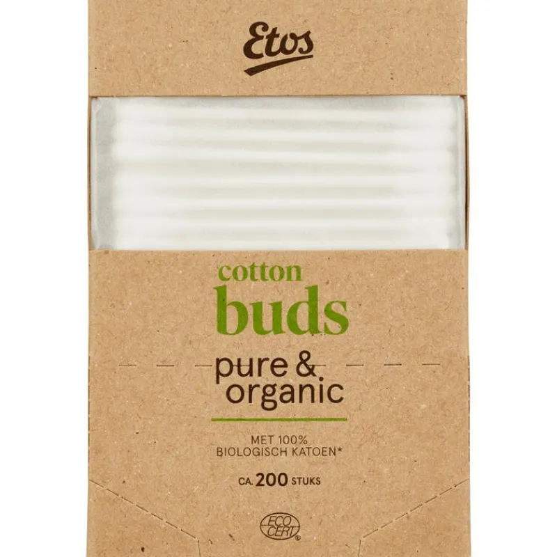 Etos Pure & Organic wattenstaafjes 200 st zijn biologisch afbreekbare wattenstaafjes. Dit product is