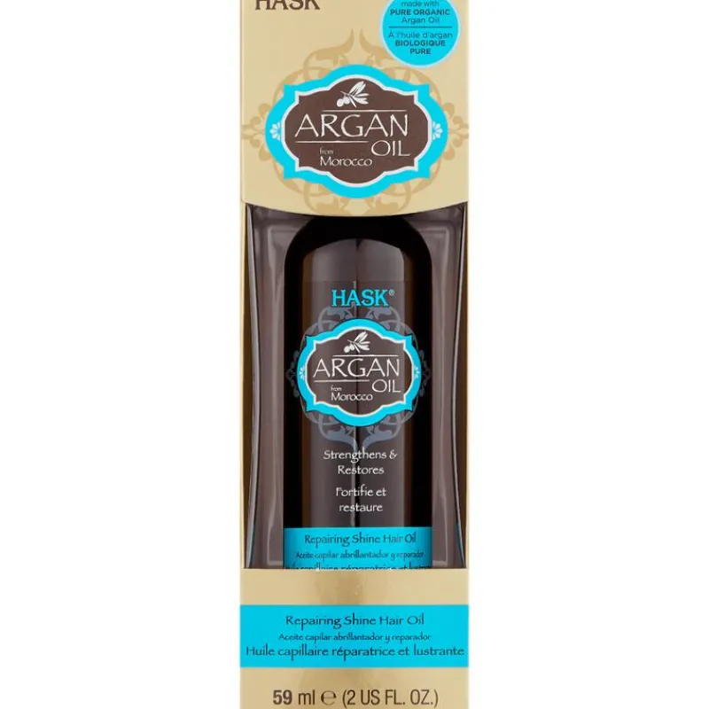 De lichtgewichte alcohol-vrije Hask Argan Oil Repairing Shine Hair Oil zorgt voor pluisvrij en glanzend haar zonder een olielaag achter te laten. Deze versterkende olie is vrij van sulfaten, parabenen en kunstmatige kleurstoffen en herstelt droog en beschadigd haar. Daarnaast bevat de Hask Argan Oil Repairing Shine Hair Oil een heerlijk frisse citrusgeur.