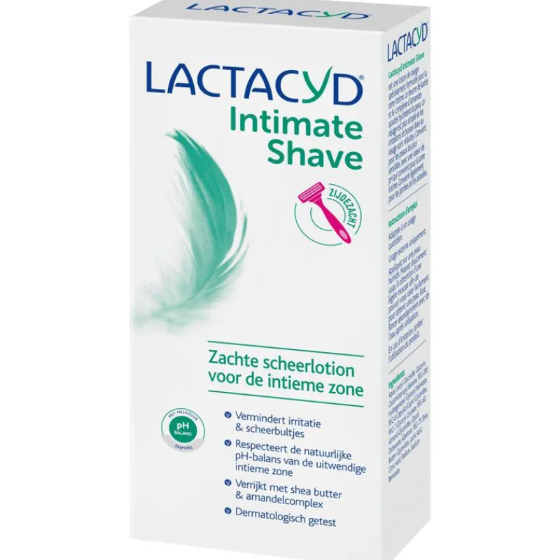 Lactacyd Intimate Shave is een speciaal geformuleerde scheerlotion voor de uitwendige intieme zone. Door de verrijking van shea butter en amandelcomplex hydrateert het de huid. Hierdoor scheert het makkelijk en vermindert irritaties en scheerbultjes. Geschikt voor de meest gevoelige huid, met een pH-waarde geschikt voor de uitwendige intieme zone.