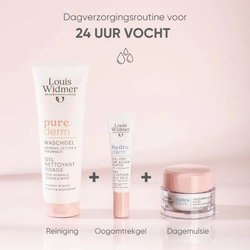 Louis Widmer hydraderm Dagemulsie UV 30 heeft een lichte textuur met UV-bescherming en bevat het biostimulatorencomplex van Louis Widmer.