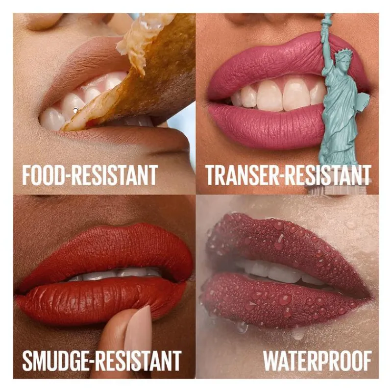 De Maybelline lipstick heeft een rijke vloeibare formule met pure, matte pigmenten. Zo hul je jouw lippen in een intense kleur met een comfortabele dekking van 16 uur lang, zonder vervagen of afgeven. De matte lipsticks kunnen elke uitdaging die op het pad komen aan, ze zijn langhoudende lipsticks die zowel smudge proof én transfer proof zijn.