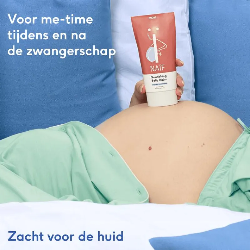 Extra tip: Onze Voedende Buikbalsem, verrijkt met shea boter, zorgt voor hydratatie van je huid tijdens en na de zwangerschap. Hiermee houd je de veranderende huid soepel en elastisch. Dit kan helpen bij zwangerschapsstriemen (striae).