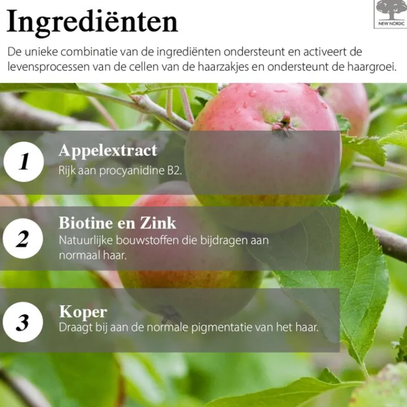 - Haarsupplement met biotine, zink en appelextract.