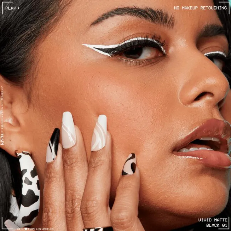 Eyeliner aanbrengen wordt makkelijk gemaakt met NYX Professional Makeup Vivid Matte Liquid Liner. Deze langhoudende vloeibare eyeliner geeft een intense matte kleur in één veeg, zodat je makkelijk kunt experimenteren met grafische lijnen en een eyeliner wing. Bovendien geeft de ultrafijne precisietip van Vivid Matte Liquid Liner je volledige controle over de dikte en de definitie van je liner bij elke applicatie. Of je nu een eyeliner newbie of expert bent, Vivid Matte Liquid Liner is een must-have in je make-up tasje!