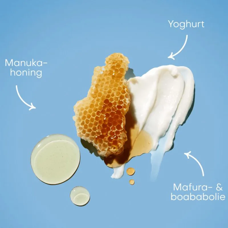 - Conditioner met sheaboter, manukahoning, yoghurt, mafura- en baobabolie