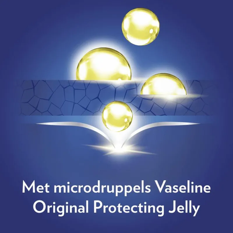 Vaseline is meer dan 150 jaar geleden uitgevonden met de lancering van de Vaseline Healing Jelly Jar. Sinds het begin staat Vaseline bekend om op een veilige en effectieve manier de huid te helpen herstellen. Onze missie is daarom ook om toegankelijke dagelijkse huidverzorgingsproducten te ontwikkelen, zodat we mensen (in nood) toegang kunnen geven tot, en kunnen voorlichten over, huidverzorging. Wat begon met de lancering van de Vaseline Healing Jelly Jar, is uitgegroeid tot een breed en gevarieerd portfolio met producten zoals Vaseline Intensive Care Lotions en Vaseline Lip Therapy Tins. Vaseline helpt de droge huid te herstellen.