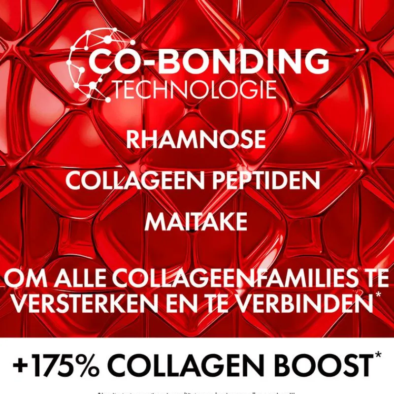 - Een dagcrème met SPF50 en een innovatieve, verstevigende anti-aging werking dankzij de unieke Co-Bonding-technologie. Deze helpt alle collageenfamilies te versterken en met elkaar te verbinden*. *In-vitrotest op de actieve ingrediënten gericht op collageen type I en III.