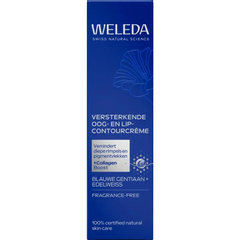 Door de veroudering van de huid kun je rimpels krijgen rond de ogen en lipcontouren, ook kunnen donkere kringen en wallen rond de ogen ontstaan. Weleda Versterkende Oog- en Lipcontourcrème is een verzachtende en kalmerende formule die de 50+ huid zichtbaar verstevigt. De crème heeft een uniek Collageen+ Active Complex met biologische edelweiss, biologische blauwe gentiaan en Centella Asiatica dat huid een collageen-boost geeft .