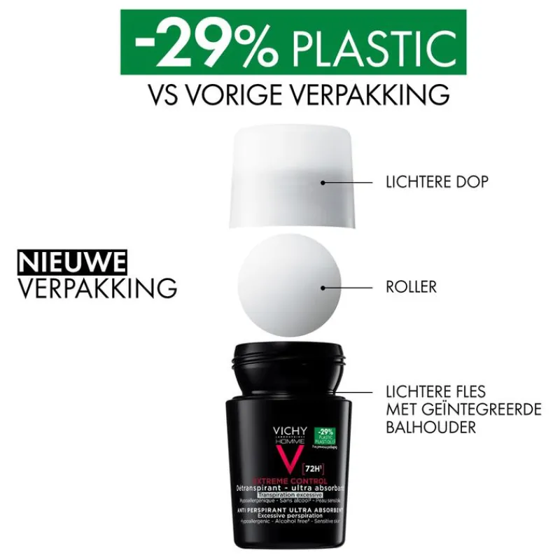 Vichy Homme 72h Anti-transpirant Deodorant is de ideale roll-on voor mannen die op zoek zijn naar een effectieve, langdurige deodorant in elke situatie. Dankzij de aanwezigheid van sterk absorberende minerale zouten wordt transpiratie gecontroleerd tot 72 uur na het aanbrengen.